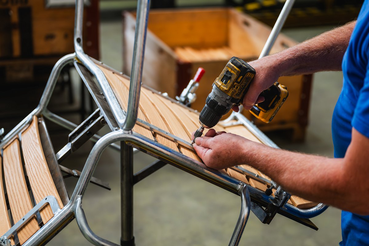 Seit über 70 Jahren entstehen unsere Gartenmöbel hier in Müllheim im Thurgau - von der ersten Skizze bis zum fertigen Gartenmöbelstück - direkt in unserer eigenen Manufaktur.